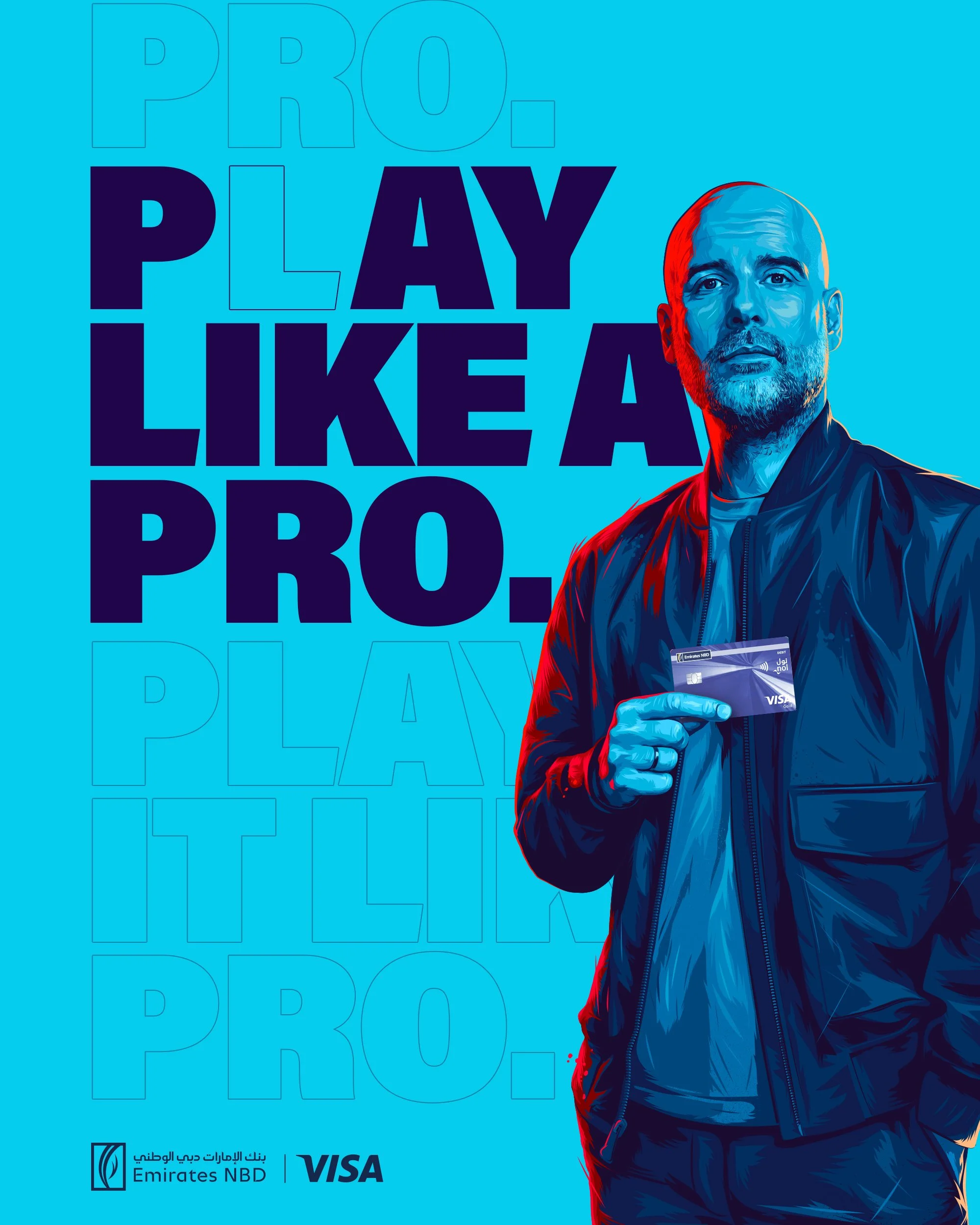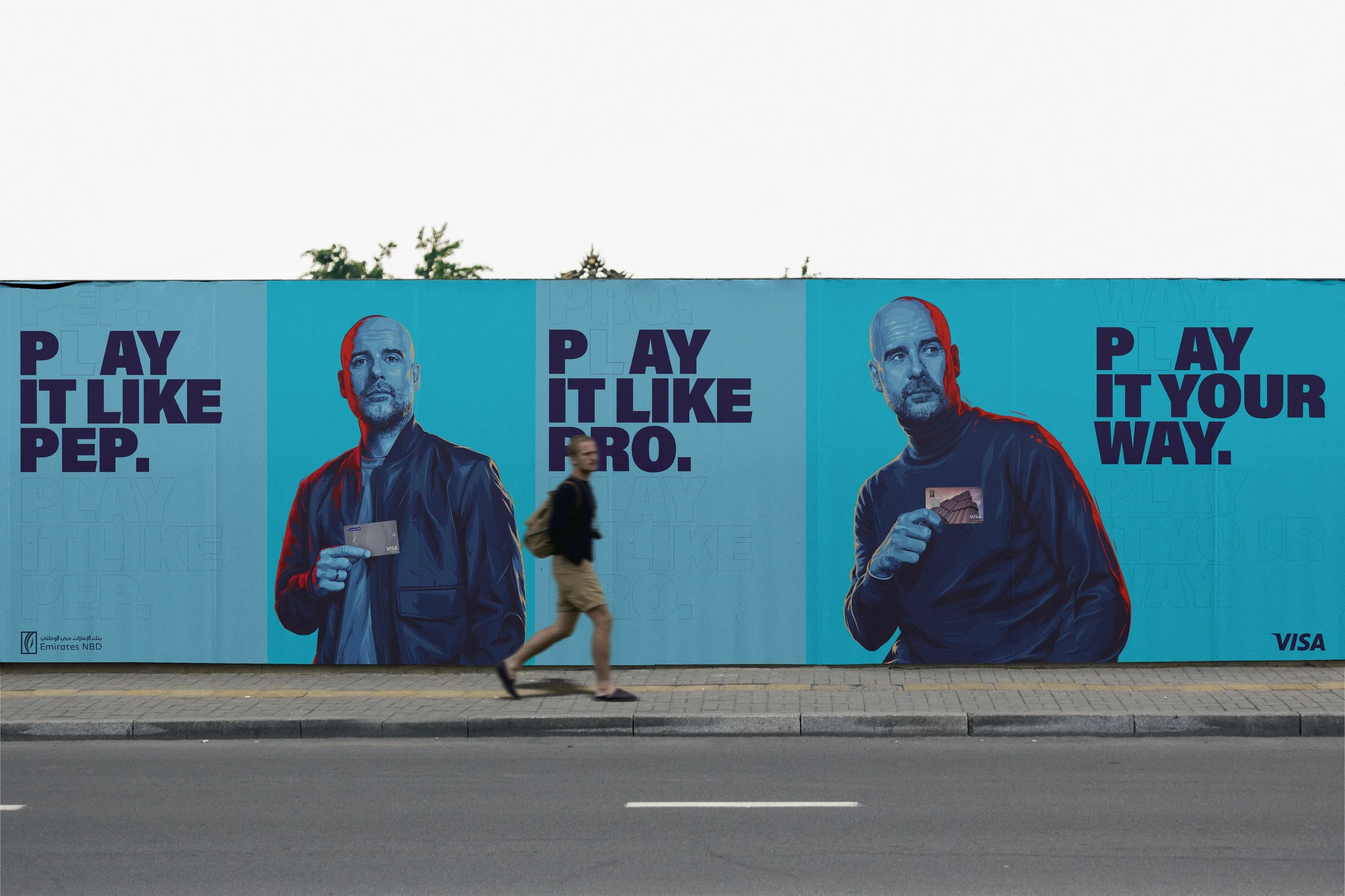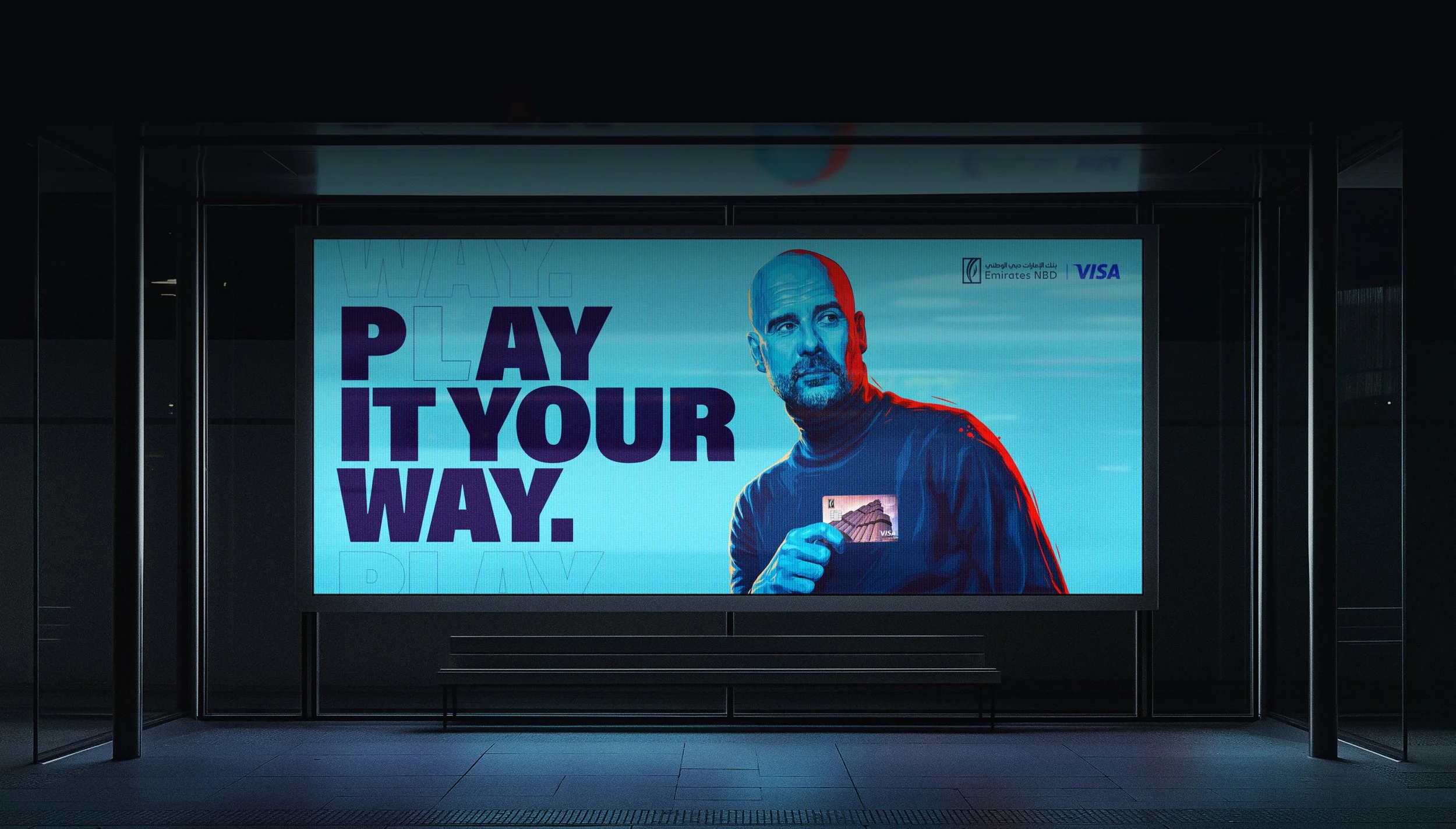 For their latest campaign, Emirates NBD and Visa joined forces with the one and only Pep Guardiola to kick things up a notch. We started with two fun, high-energy film ads that show Pep like you’ve never seen him before. Then we took it a step further, turning a slick photoshoot into a bold, hyper-realistic illustration that blends style with substance. The result? A fresh, creative take on a football legend who stands for vision, strategy, and leadership.